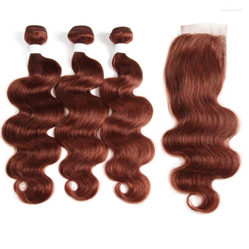 Color 33 Auburn Hair Bundles With Closure Light Brown Peruvian Body Wave Bundles With Closure 8a Auburn Red Hair Extensions Human Hair Bundles With 4x4 Lace Closure 14 With 16 16 16